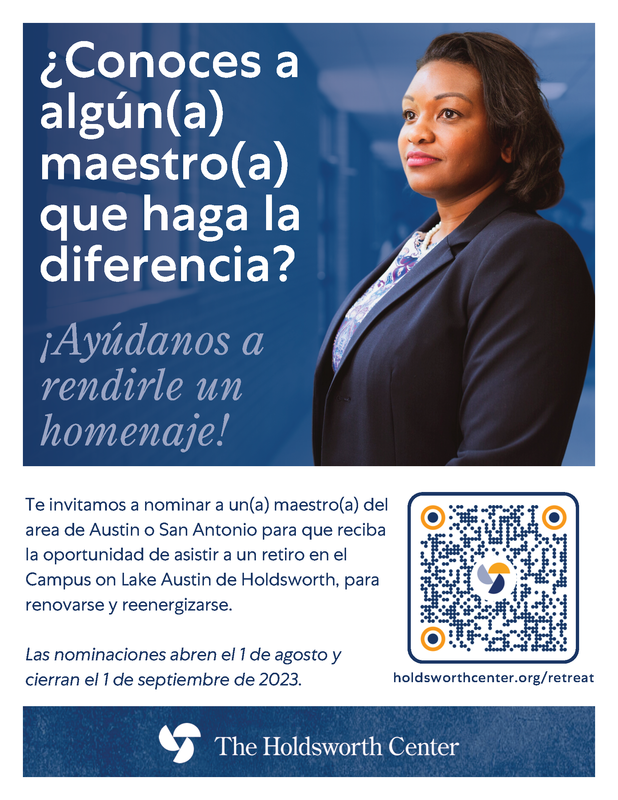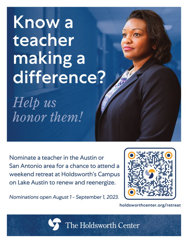 Help us honor our Harlandale ISD teachers by nominating them for a weekend retreat at Holdsworth's Campus on Lake Austin! Winners will have the chance to relax, recharge, and reflect on their teaching practice.